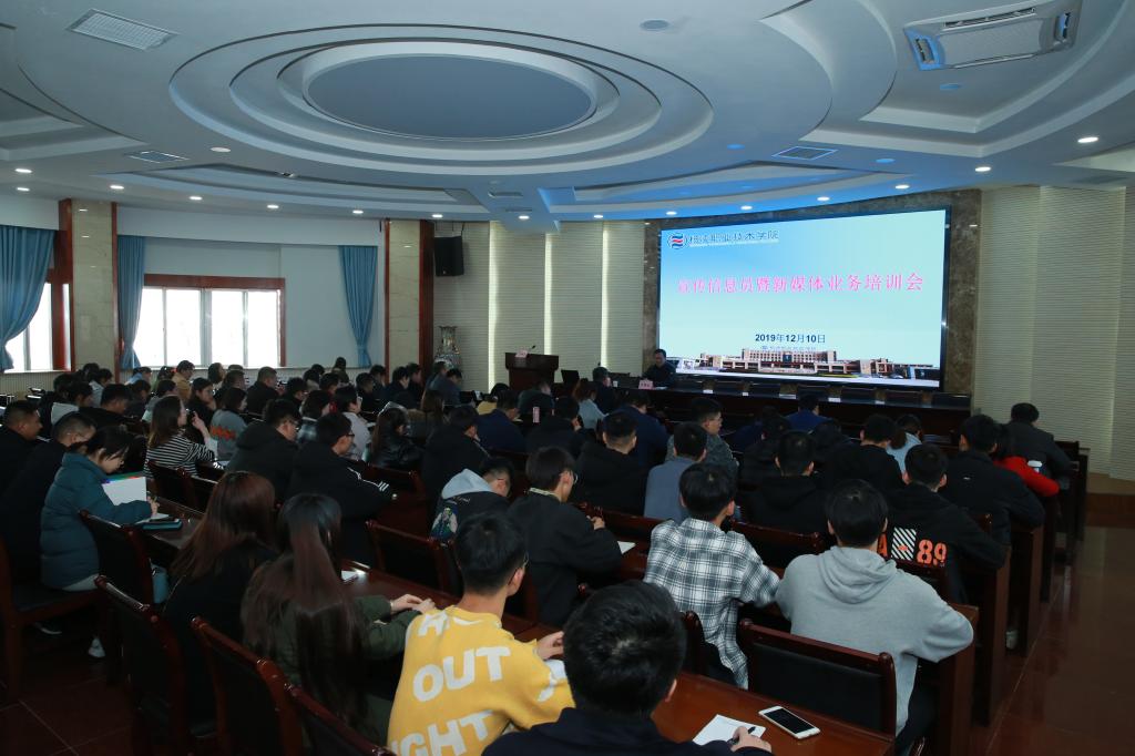 各分院(部) 院办、学工办主任,负责网站工作的宣传信息员、负责新媒体工作的老师和学生骨干;各处室负责网站工作的宣传信息员,党委宣传部、网络与技术教育中心全体工作人员,新媒体联盟学生骨干100余人参加了培训会