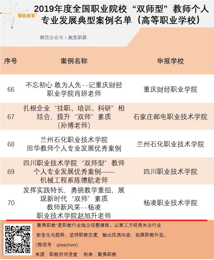 我院入选全国职业院校”双师型“教师队伍建设典型案例