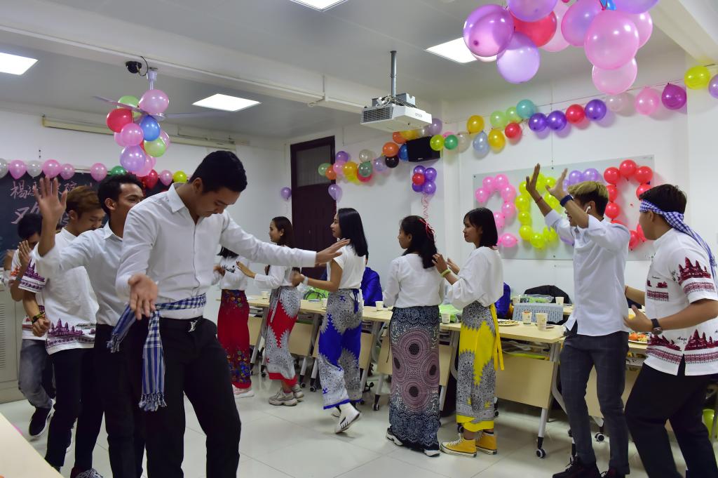 12月31日晚,我院在西校区举行了外国留学生欢度元旦联欢晚会。院长王周锁以及国际学院负责人、全体教师观看了晚会与留学生们一起跨年