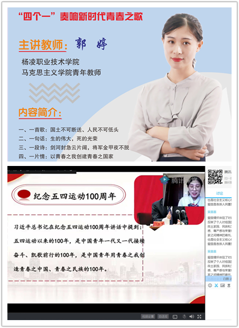 5月4日,我院开展线上主题团日活动,青年教师郭婷以“‘四个一’奏响新时代青春之歌”为题线上开讲,部分领导教师和广大学生进入直播间聆听讲课。大家一致认为,这是一次生动的爱国主义教育课和疫情防控思政课,通过此次活动,更加坚定了对中国特色社会主义制度的认同。广大学生表示,要继承和发扬五四精神,坚定理想信念,站稳人民立场,练就过硬本领,投身强国伟业。