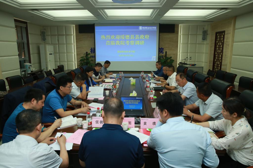 6月8日上午,绥德县县长姬跃飞、副县长孙虎生一行来我院,就农业技术推广和高素质农民培训等事宜进行考察调研。学院党委书记陈宁、副院长祝战斌接待了姬跃飞一行,并与其座谈交流。