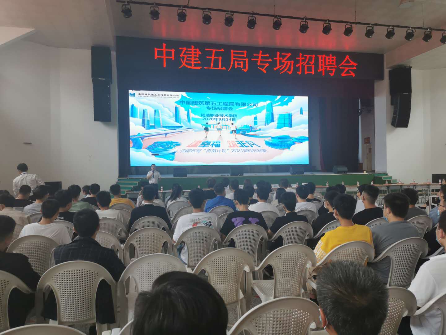 9月14下午,学院在南校区一卡通中心举办中建五局专场招聘会,央企中建五局三公司、华南公司、总承包公司、安徽公司、河南公司及中建隧道建设有限公司等六大单位同时现场招聘,学院800多名2021届毕业生参加了此次招聘会。