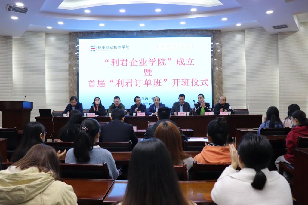 10月30号下午,game365游戏中心官网“利君企业学院”成立暨首届“利君订单班”开班仪式在南校区水韵楼报告厅举行。药物与化工院党总支书记刘根牢院长周博副院长龙凤来,西安利君制药有限责任公司人事处处长李俊锋固体制剂车间技术主任李合成车间技术主任延河、人事处主管司林婧,药学和药品生产技术教研室专业教师以及首届35名订单班学员参加大会。大会由产教融合处副处长郑爱泉主持。