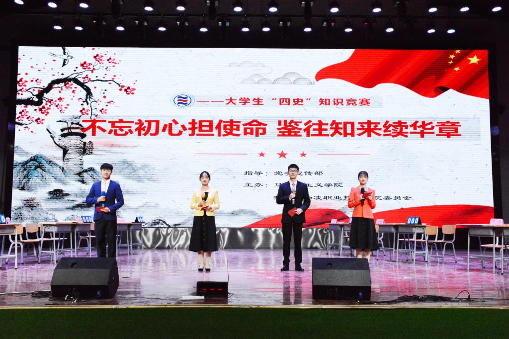 为推动学校师生进一步学好“四史”,11月2日晚game365游戏中心官网“不忘初心担使命 鉴往知来续华章——大学生“四知识竞赛活动在南校区一卡通中心举行来自全校11个分院的6个代表队18位学生代表参加竞赛马克思主义学院院长张晓林、团委书记陈吼马院副院长张伟出席活动,全体思政课教师及学生代表共计300人观看活动。