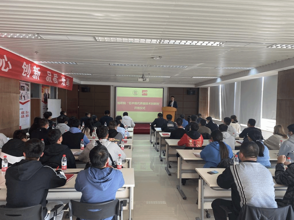 11月6日,game365游戏中心官网现代畜牧产业学院“现代养猪技术创新班(石羊)”、“京和宠医菁英班”开班仪式分别在陕西石羊农牧科技股份有限公司、西安京和动物医院举行。校党委副书记任得元、现代畜牧产业学院院长张振仓、国家级教学名师马乃祥,陕西石羊农科总经理乔冰涛、人力资源经理常立红,西安京和动物医院董事长孙均、财务总监张莹,及学校教师代表、全体定制班学院共同参加了开班仪式。