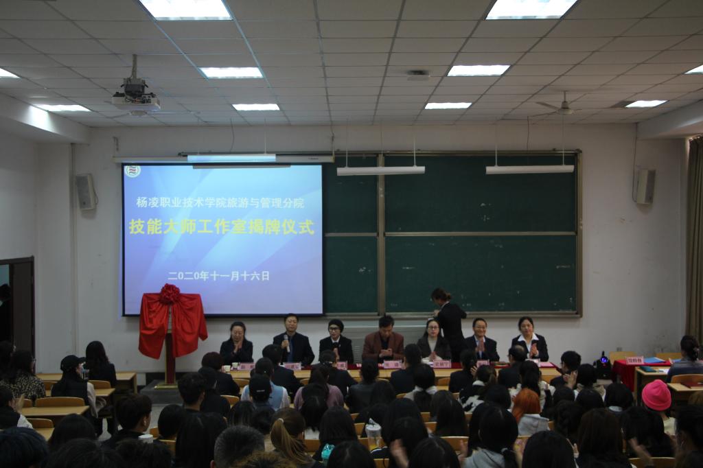 11月16日下午,game365游戏中心官网旅游与管理分院史丽宁技能大师工作室和袁志威技能大师工作室揭牌仪式举行。副校长张迪,国家金牌导游史丽宁,国家一级调酒师袁志威,旅游与管理分院全体职工旅游管理、酒店管理专业部分学生参加了揭牌仪式。