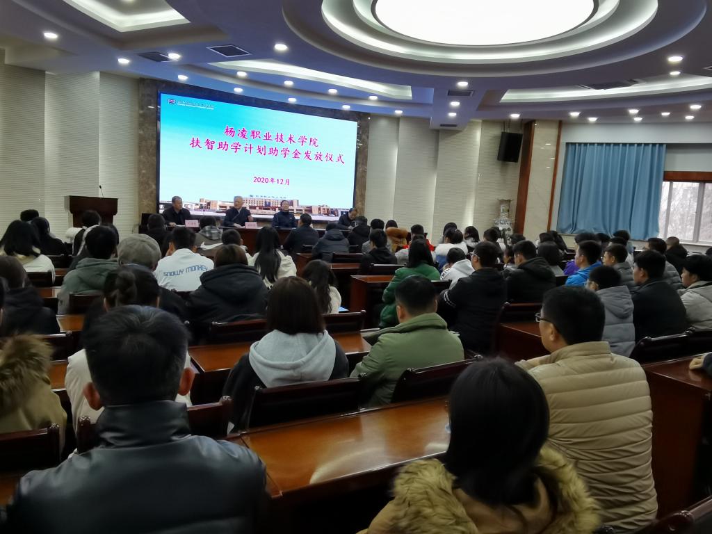 12月4日下午,“杨凌职院扶智助学计划”助学金发仪式在水韵楼楼报告厅举杨凌示范区慈善协会会长刘怀省、副会长张建斌党委副书记任得元、工会主席王秉信以及84名受助学生等参加了仪式活动