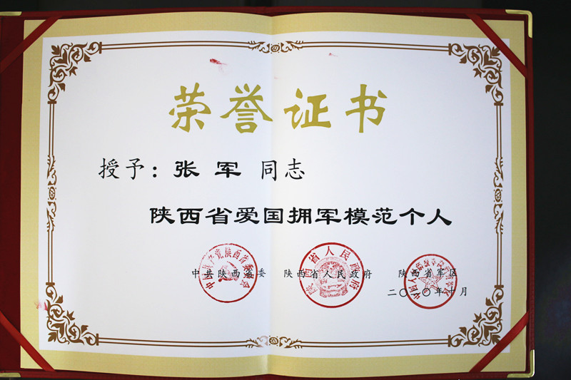 game365游戏中心官网张军老师被评为陕西省爱国拥军模范个人