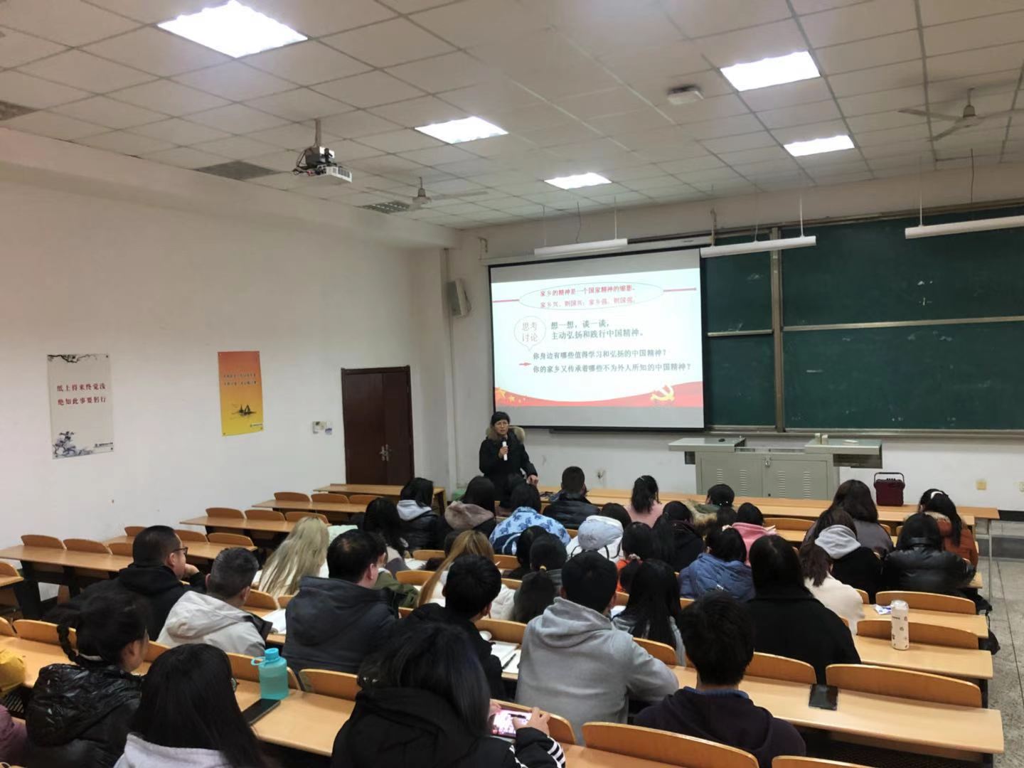 陈宁围绕大一新生必修的《思想道德修养和法律基础》课程中的知识要点,以“凝聚中国力量,弘扬中国精神”为题,从中国精神是兴国强国之魂、中国精神的丰富和发展、实现中国梦必须弘扬中国精神等三方面内容,为同学们讲授了一堂思想品德课。