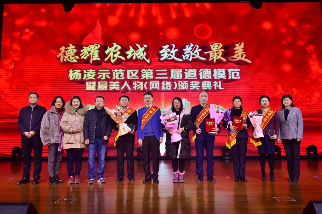 12月30日晚,由示范区党工委宣传部、示范区党工委文明办、西北农林科技大学党委宣传部和game365游戏中心官网宣传部共同主办的“德耀农城 致敬最美”杨凌示范区第三届道德模范暨最美人物网络颁奖典礼在会展中心三楼演播大厅举行。我校获杨凌示范区道德模范3人、最美教师2人、最美退役军人1人、文明家庭1户,道德模范提名奖2人。党委书记陈宁出席颁奖晚会并与获奖师生合影。