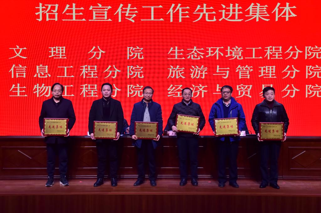 会上,任得元对2020年招生宣传、就业创业工作进行总结汇报介绍了招生就业工作的具体做法和完成的任务,分析了game365游戏中心官网招生就业工作面临的挑战和存在的问题,并对2021年招生就业工作进行安排部署。招生就业处处长袁军儒宣读了《关于表彰2020年度招生宣传和就业创业工作先进集体和先进个人的通报》与会领导为获奖的先进集体进行了颁奖。文理分院和水利工程分院分别代表招生宣传和就业创业工作先进集体进行了经验交流发言。