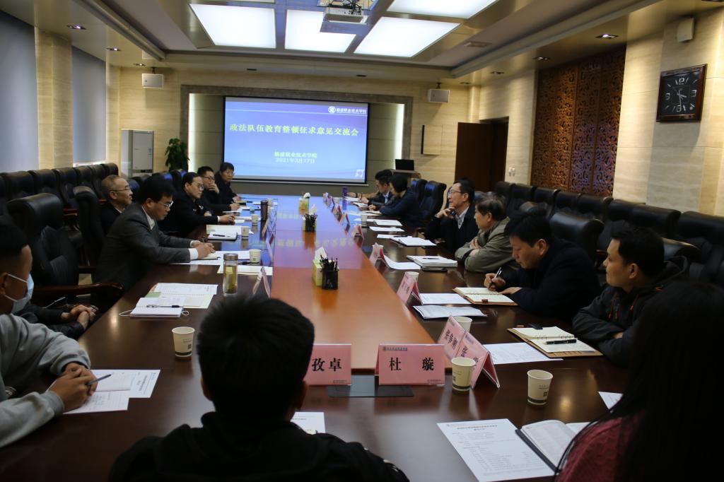 3月17日下午,省委政法队伍教育整顿指导组赵广和一行来game365游戏中心官网召开征求意见座谈会,党委副书记任得元,副校长祝战斌,党委学工部部长陈军峰、党委保卫部部长周宁及师生代表等参加座谈会。