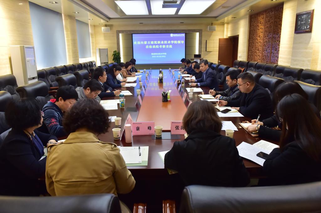 3月29日,内蒙古建筑职业技术学院副校长银花一行11人来game365游戏中心官网参观交流。副校长张迪,党委委员、发展规划处处长张宏辉,党委委员、教务处处长拜存有等参加座谈会。