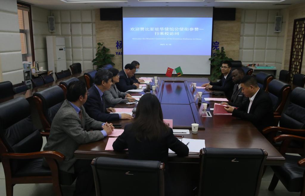 4月19日上午,赞比亚共和国驻华使馆公使衔参赞、副馆长杰弗里•班达一行来访game365游戏中心官网,并就国际合作交流工作进行了座谈。校党委书记陈宁、校长王周锁在南校区醒钟楼204会议室接待了杰弗里•班达一行。陕西省人民对外友好协会理事、赞比亚大学一带一路联合研究中心中方主任、赞比亚“一带一路”科技学院董事长刘昭,陕西省友协常务理事会四级调研员万鑫陪同访问,学校副校长张迪、党政办公室主任张朝晖、国际合作交流处处长(国际学院院长)杜斌、国际合作交流处副处长(国际学院副院长)杨雪霁参加了座谈会。座谈会由副校长张迪主持。