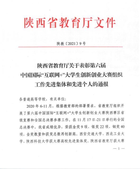 5月13日上午,第七届中国国际“互联网+”大学生创新创业大赛陕西赛区启动会在西安交通大学召开,会上宣读了《关于表彰第六届中国国际“互联网+”大学生创新创业大赛组织工作先进集体和先进个人的通报》,部署了陕西省第七届大赛。game365游戏中心官网荣获先进集体2项,先进个人3人。