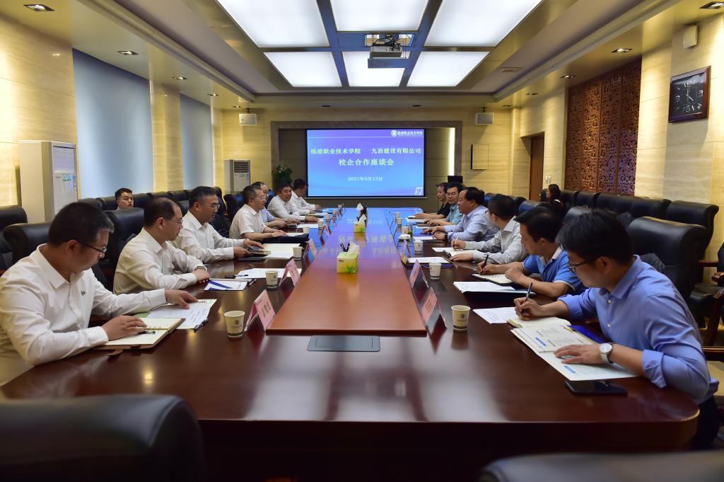 聂玉栋对学校一直以来给予九冶公司各项工作的支持表示感谢,并从公司历史沿革、企业战略、发展定位、企业文化、人才培养机制、城市设施建设、铝结构应用及科技创新成果等方面进行了详细的介绍。聂玉栋指出,公司和学校有着天然的渊源和密切的联系,双方在合作过程中结下了深厚的友谊,希望双方今后能在人才定单式培养,拓展优势产学资源、科技成果转化等方面继续加深合作。持续拓展校企协同育人的力度和产教共融的深度,联手打造校企合作共同体,为建成具有中国特色高水平高职学校和具有竞争力的行业一流工程总承包企业互信互享,协同共进。