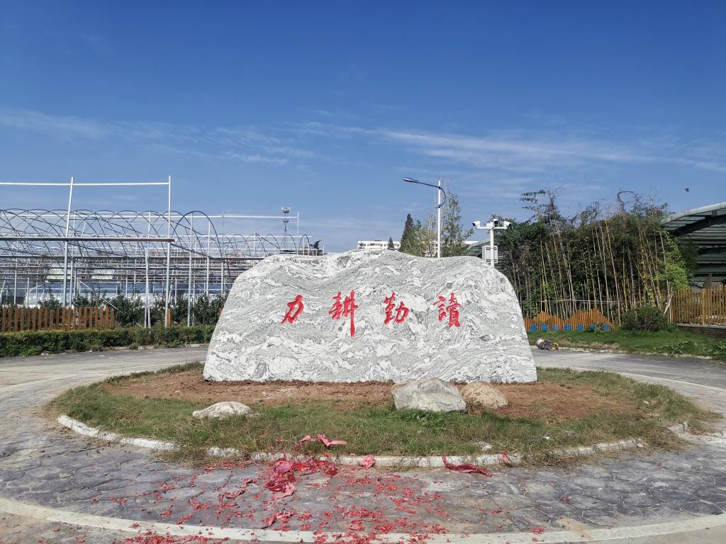 为加强校园文化建设,提升学校文化品位,弘扬劳动精神和耕读文化,10月16日上午,“力耕勤读”景观石落地学校大学生劳动教育基地。