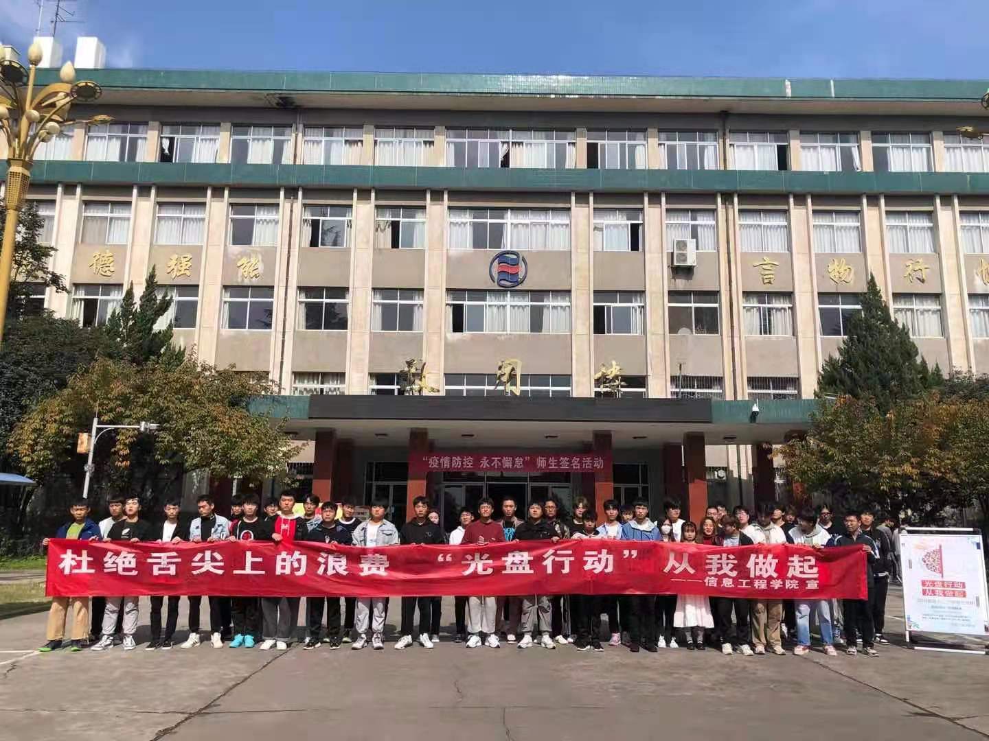 1011日至21日,信息工程学院在南北两个校区开展“厉行节约 从我做起”主题实践活动。此次活动主要通过线上线下相结合的方式开展,线上主要通过微信朋友圈集赞、QQ群内光盘打卡等形式进行,线下主要通过召开主题班会、发放倡议书、组织承诺签名活动等形式进行。