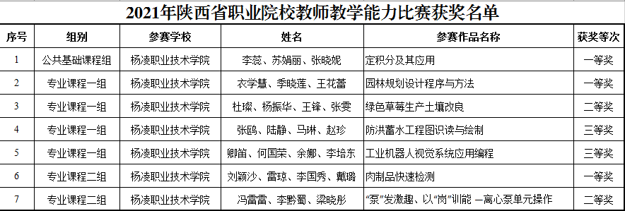 10月25日,省教育厅公布了2021年陕西省职业院校教师教学能力比赛获奖名单,学校获一等奖3项二等奖2项三等奖2项,其中两个团队获2021年国赛参赛资格,学校获优秀组织奖。