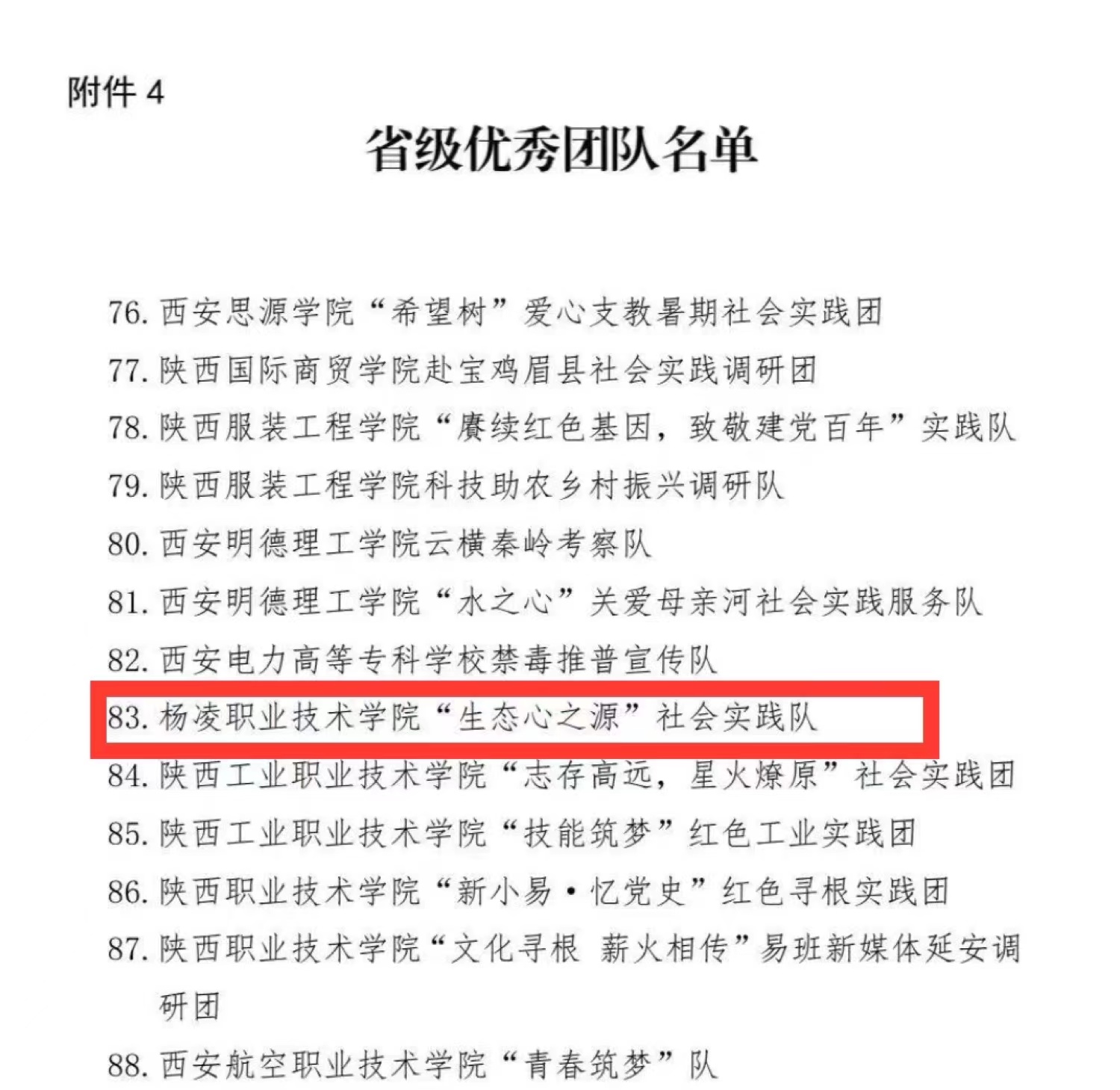 近日,省委宣传部、省委文明办省委教育工委共青团省委和省学生联合会2021年陕西省大中专学生志愿者暑期文化科技卫生“三下乡”社会实践活动中表现突出的集体、个人予以表扬通报。学校生态环境工程学院“生态心之源”社会实践团队获省级优秀社会实践团队,生物工程学院教师薛元夏、建筑工程学院教师程瑞芳获省级先进个人。