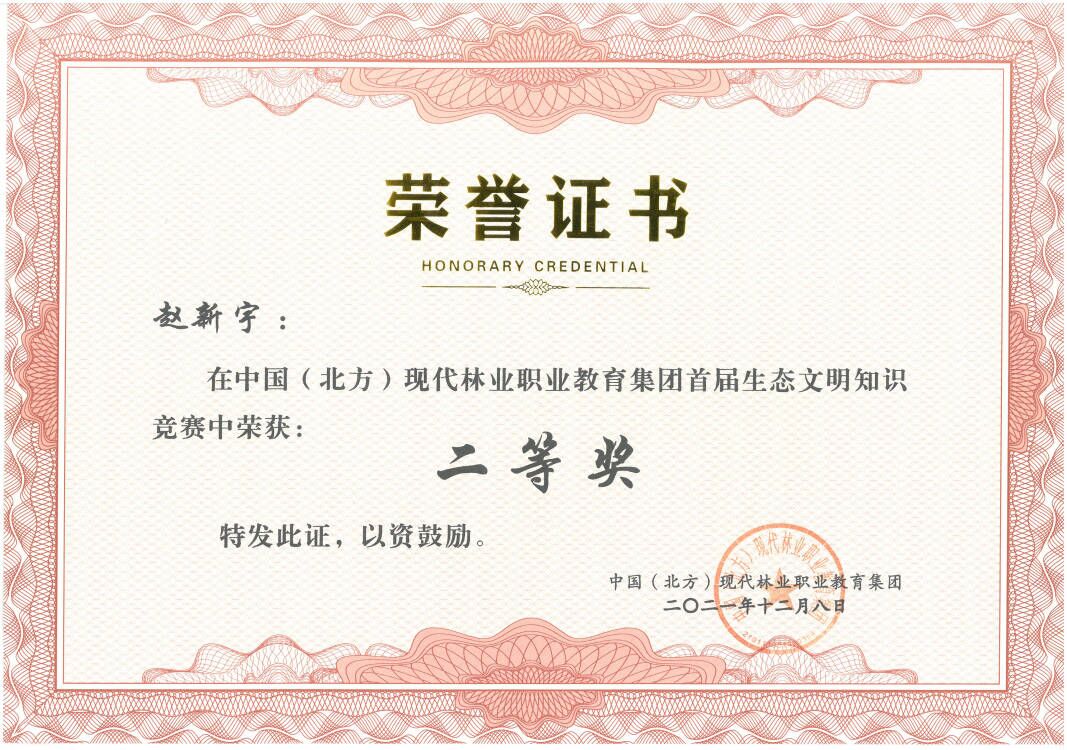 11月25日30日中国(北方)现代林业职业教育集团举办首届生态文明知识竞赛活动学校生态环境工程学院教师赵新宇、白燕茹以及学生李小凤均荣获二等奖。