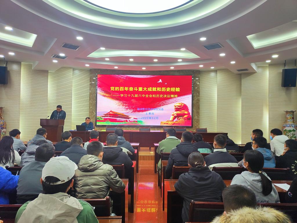王勇胜围绕党的十九届六中全会的召开背景、核心要义以及中心内容等方面系统诠释了党的十九届六中全会精神。他要求大家党的十九届六中全会精神学懂悟通做实在实际工作中做到融会贯通,坚定理想信念坚守立德树人初心,担当为党育人、为国育才使命,努力为推动学校各项事业发展贡献自己的力量。