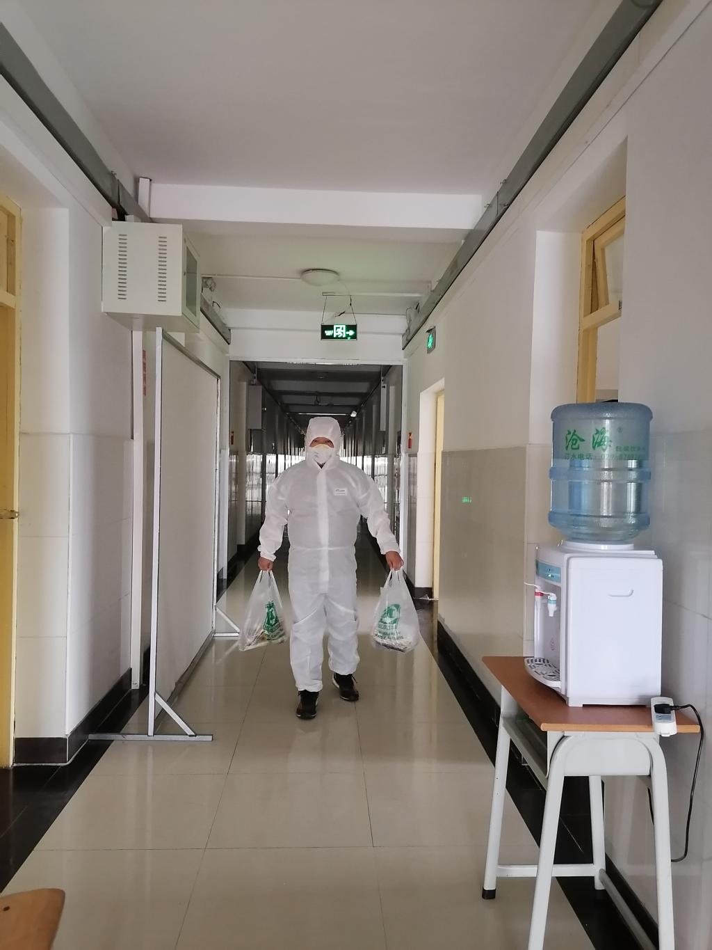 被隔离人员进驻隔离区后,郭飞要尽快核实隔离人员的基本信息、流调情况报送疫情防控领导小组,按照规范进行每日消毒、物资发送、物资接收、物资配送等,被隔离人员有什么需要都尽力满足,基本都是通宵干,连轴转。