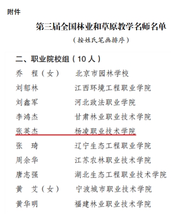 学校张英杰教授被评为全国林业和草原教学名师