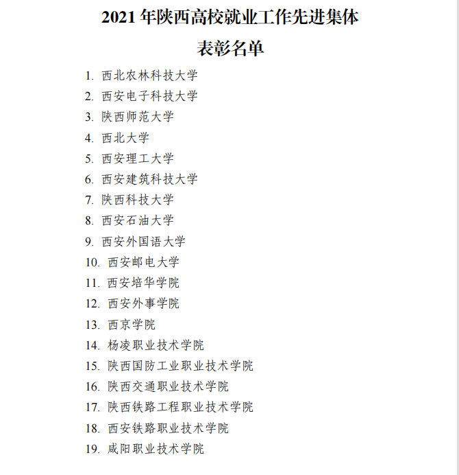 学校获2021年陕西高校就业工作先进集体荣誉称号