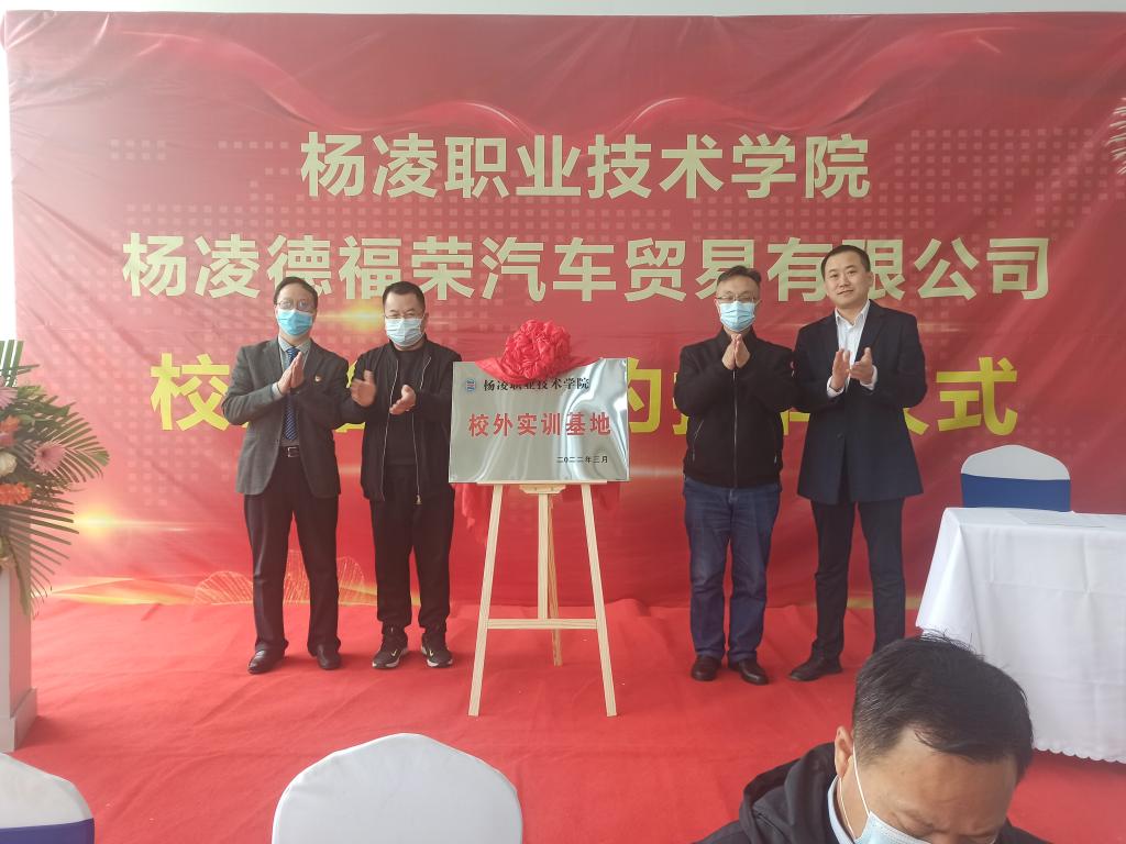 3月30日上午,game365游戏中心官网机电工程学院与杨凌德福荣汽车贸易有限公司举行校企合作签约暨校外实训基地揭牌仪式。杨凌示范区工商联党组书记卓涛,杨陵区委常委、组织部部长王勇,杨陵区工商联党组书记李俊苗、工信局局长陈团江及李台街道党工委相关领导,game365游戏中心官网机电工程学院党总支书记马秀魁、院长龙建明,杨凌德福荣汽车贸易有限公司法人穆斌、总经理穆涛等出席签约仪式。
