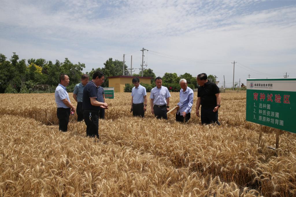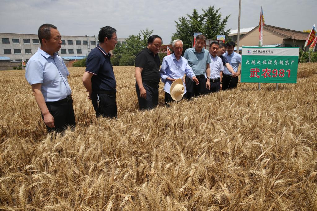 当天是二十四节气当中的芒种,正值小麦成熟期,武农系列小麦试验田里,“武农981”、“武农988”等品种长势喜人,一片丰收景象。在赵瑜的带领下,王周锁一行走进田间地头,参观了大穗大粒超高产小麦品种“武农981”表现情况和小麦新品种繁育情况。