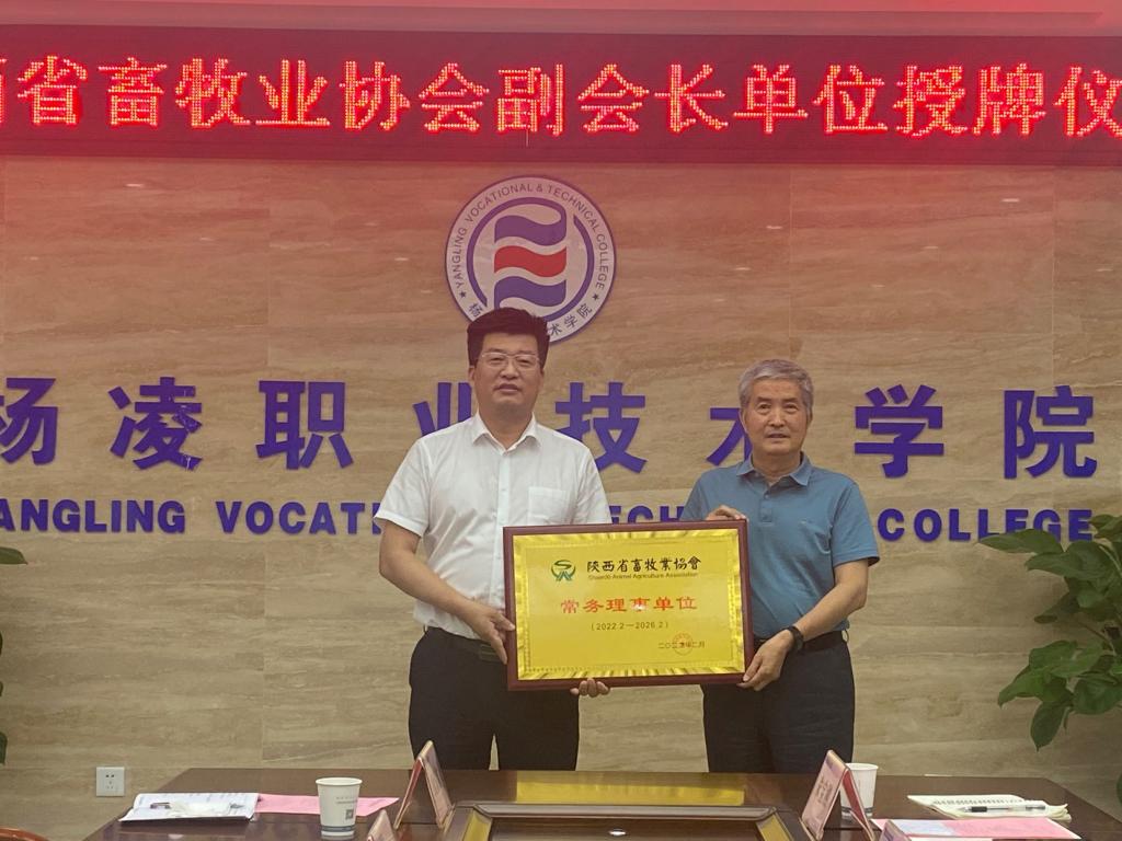 郭庆宏向game365游戏中心官网颁发了陕西省畜牧业协会副会长单位、常务理事单位牌匾,他希望杨凌工作站要深化责任、明确方向,积极开展各项工作并取得创新性成果。