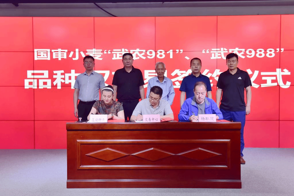 6月14日,学校赵瑜研究员主持选育的国审大穗大粒小麦新品种武农981”“武农988品种权交易签约仪式在杨凌示范区秦创原农业板块创新驱动平台举行,这标志着学校科技成果转化工作的重大突破,也是学校落实秦创原创新驱动平台建设的重要举措。副校长胡俊鹏、小麦育种专家赵瑜、科技与教育研究处处长冯旭,国家(杨凌)旱区植物品种权交易中心主任宋宇河南开封莲瑜种业有限公司董事长付井莲等参加签约仪式。
