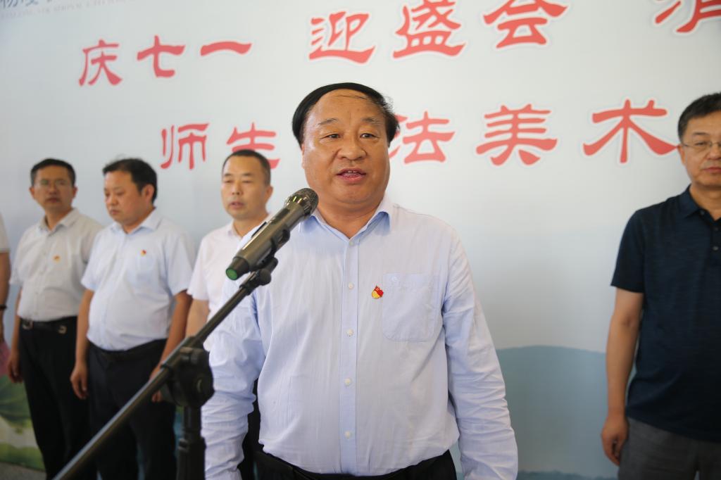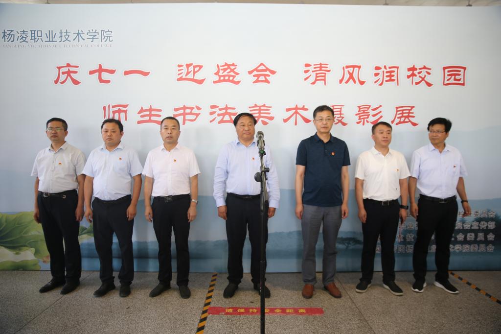 6月30日下午,学校“庆七一•迎盛会•清风润校园”师生书法美术摄影展在南校区一卡通中心开幕。党委副书记、校长王周锁宣布师生书法美术摄影展开幕,党委副书记、纪委书记王勇胜讲话,副校长祝战斌主持开幕式。