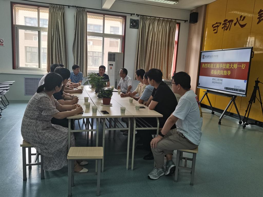 仪式上,祝战斌与王振华共同为“王振华技能大师工作室”揭牌。校企双方就专业(群)建设、人才培养、双师型教师培养、“1+X”证书制度、技术技能攻关、教学资源建设、科研推广等方面进行了座谈交流,并达成合作意向。