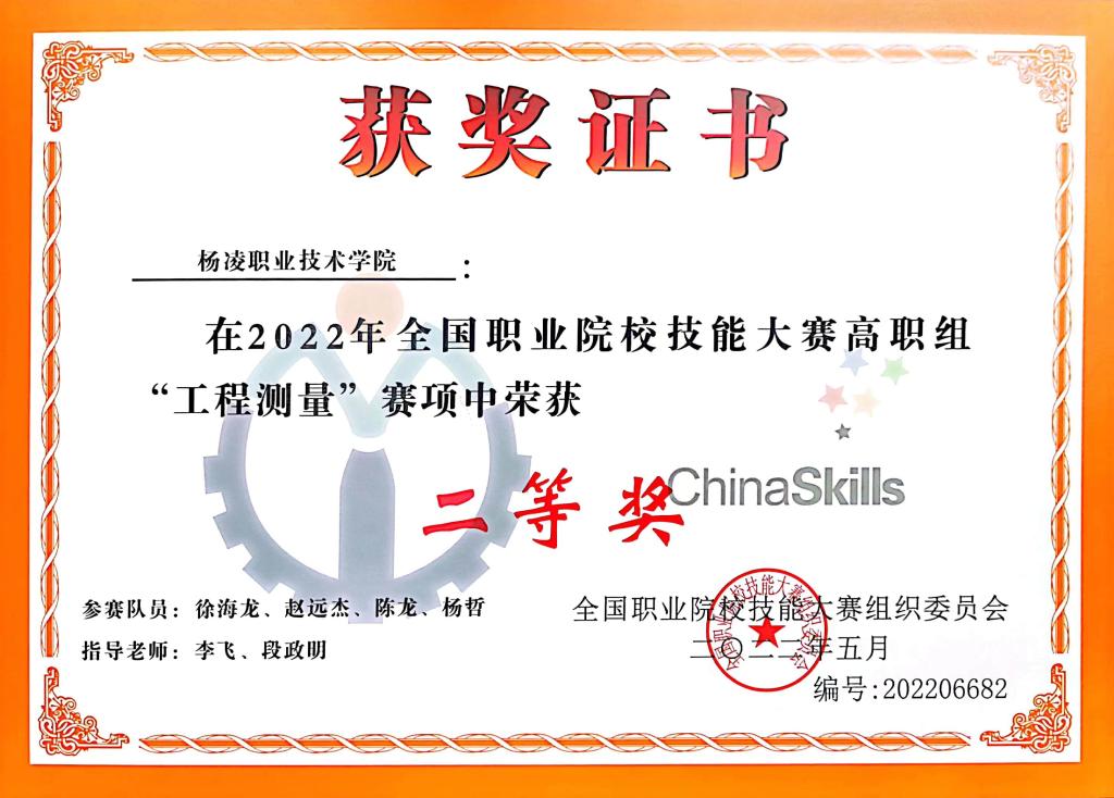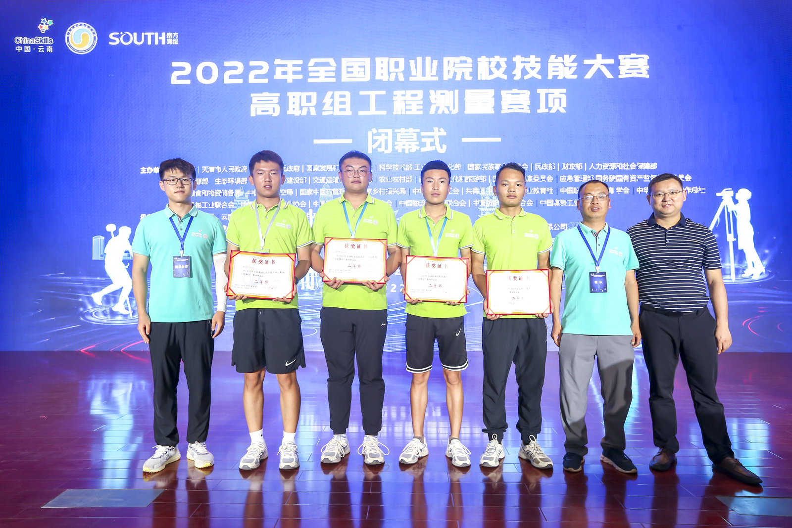 8月14日至18日,2022年全国职业院校技能大赛高职组“工程测量”赛项在云南交通职业技术学院举行,来自全国31个省市区的62支参赛队参加。game365游戏中心官网交通与测绘工程学院学生徐海龙、杨哲、赵远杰和陈龙组成的代表队荣获二等奖。