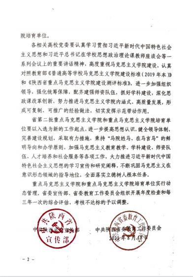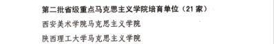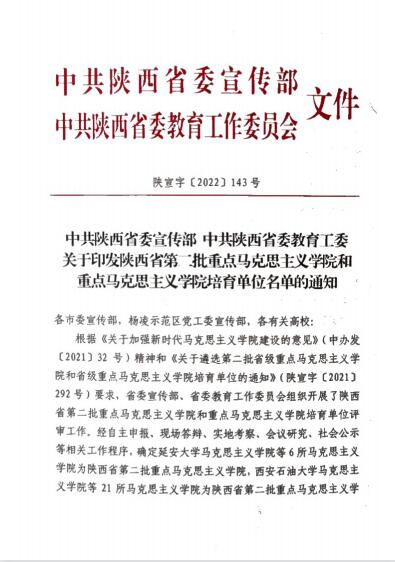 此次评审工作由省委宣传部、省委教育工委组织开展,经自主申报、现场答辩、实地考察、会议研究、社会公示等相关程序,确定陕西省第二批重点马克思主义学院6所,陕西省第二批重点马克思主义学院培育单位21所。