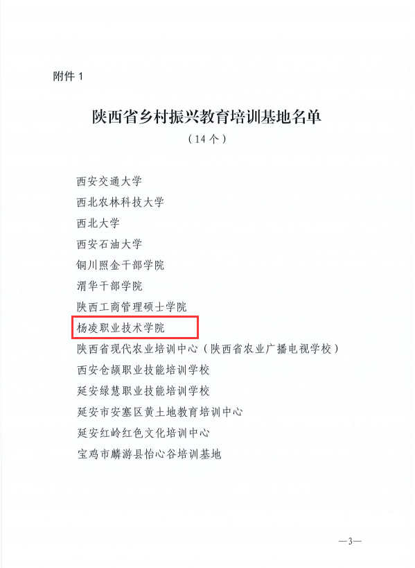 近日,中共陕西省委农村工作领导小组、省委实施乡村振兴战略领导小组办公室布了关于认定陕西省乡村振兴教育培训基地的通知》,game365游戏中心被认定为陕西省乡村振兴教育培训基地。这是杨凌职院继获“陕西省乡村振兴人才培养基地”、“陕西省乡村振兴干部培训基地”之后,服务三农工作助力推进乡村振兴全面实施的又一重要平台。