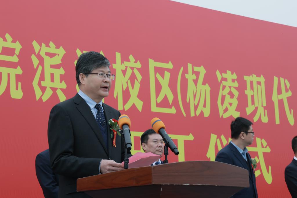 王周锁在致辞中代表学校全体师生向参加滨河校区建设开工仪式的各位领导和嘉宾表示热烈欢迎,向长期以来关心支持学校各项事业发展的各级领导、各界人士和滨河校区参建单位表示诚挚感谢。他指出,滨河校区建设是全体杨职人一直以来的夙愿,承载着学校励志图强的光荣与梦想,是学校推进“game365游戏中心官网”建设、升格本科职业大学、实现高质量发展的有力支撑和关键举措。全校上下将认真学习宣传贯彻党的二十大精神,以党的二十大报告中对教育、科技、人才工作的系统阐述为遵循,坚持以立德树人为根本、以强农兴农为己任,扎根杨凌、面向全国、服务世界,紧抓新校区建设这一机遇,全力打造全国农业高职教育新高地,并按照学校“十四五”规划确立的“12468”发展思路,科学实施“六新”方略,深入推进区校融合、产教融合、校企合作,持续优化办学条件,加快建设“中国特色、世界一流职业大学”。