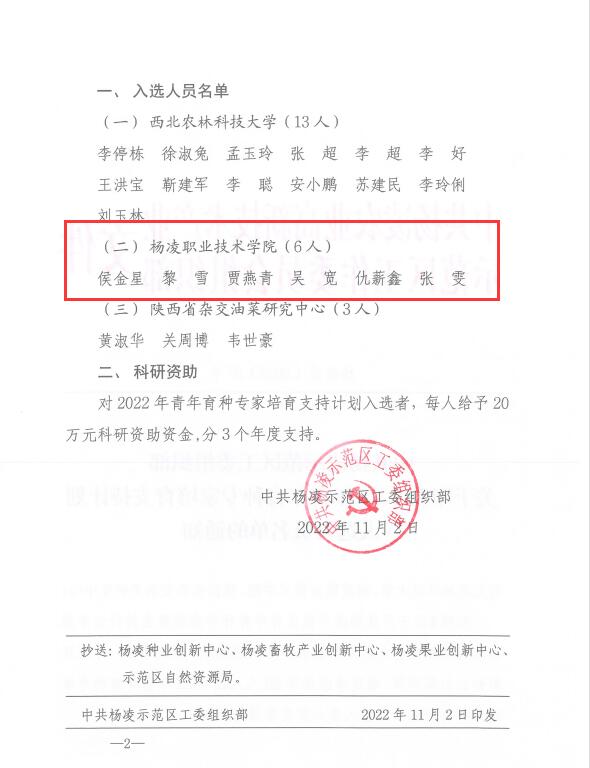 学校6人入选杨凌示范区青年育种专家培育支持计划