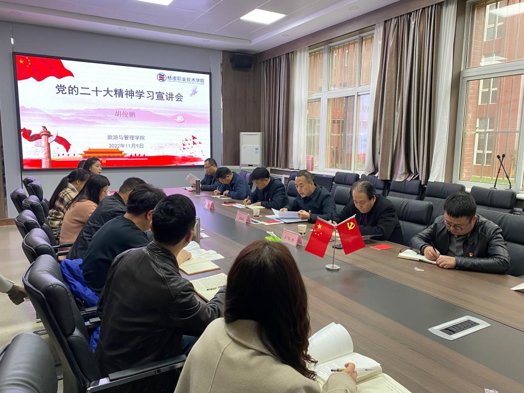 119日下午,副校长胡俊鹏在北校区行知楼为旅游与管理学院领导班子、总支委员、支部委员、全体党员及辅导员宣讲党的二十大精神