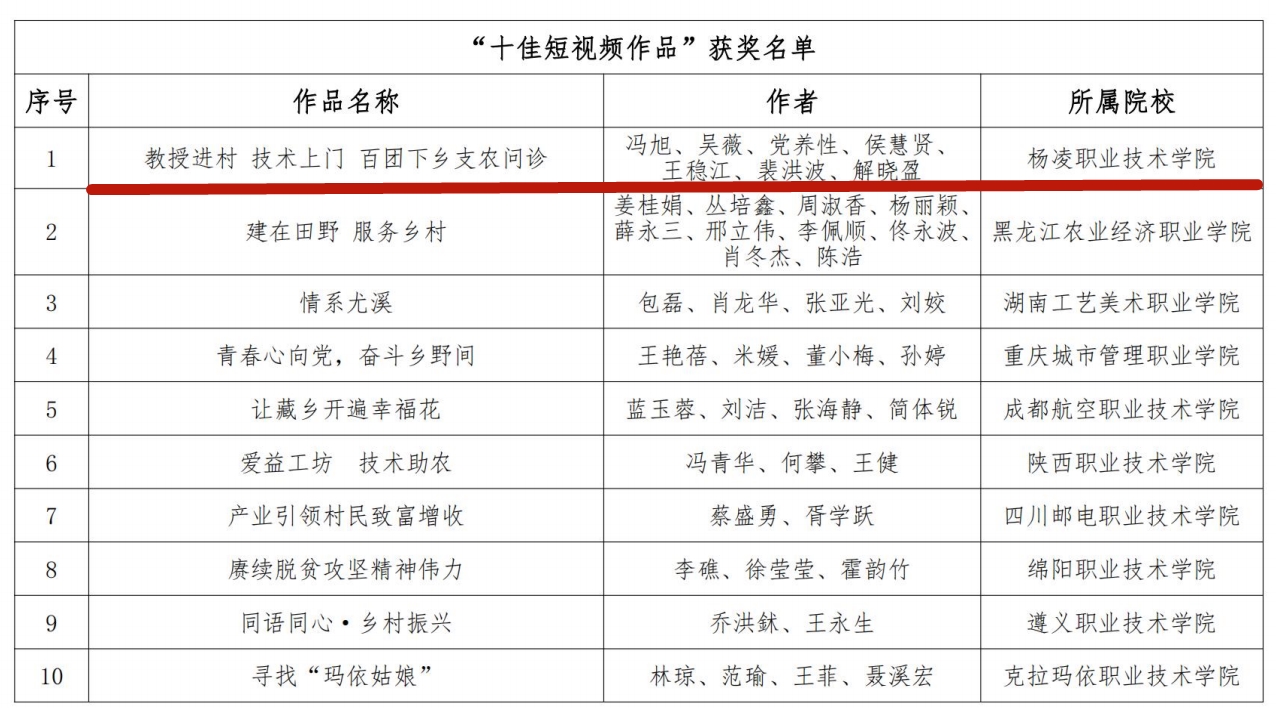 11月13日,全国职业院校巩固扶贫成果服务乡村振兴协作联盟公布了“乡村振兴 职教同行”摄影暨短视频大赛作品评选结果,冯旭团队创作的短视频《教授进村技术上门百团下乡支农问诊》获得“十佳短视频作品”,game365游戏中心官网获优秀组织奖获奖作品将通过联盟公众号和网站宣传推介并向全国主流媒体和上级部门重点宣传推介。