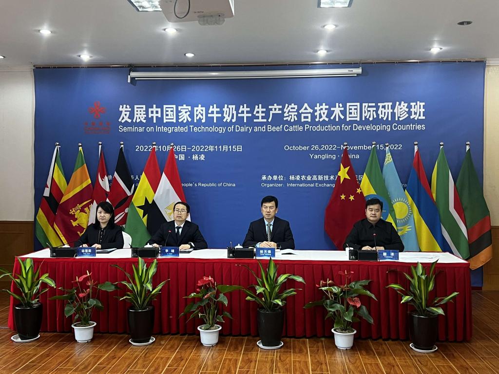 11月15日,game365游戏中心协办的国家商务部2022年发展中国家肉牛奶牛生产综合技术国际研修班结业典礼举行。省商务厅二级巡视员昌利,杨凌示范区管委会副秘书长杨天锋,学校国际合作交流处副处长杨雪霁出席结业典礼,来自肯尼亚、赞比亚、埃塞俄比亚、尼泊尔、津巴布韦、埃及、斯里兰卡、哈萨克斯坦、南非、毛里求斯、加纳等11个国家的38名学员在线上参加活动。结业典礼由上合组织农业基地工作办公室副主任李瑞主持。