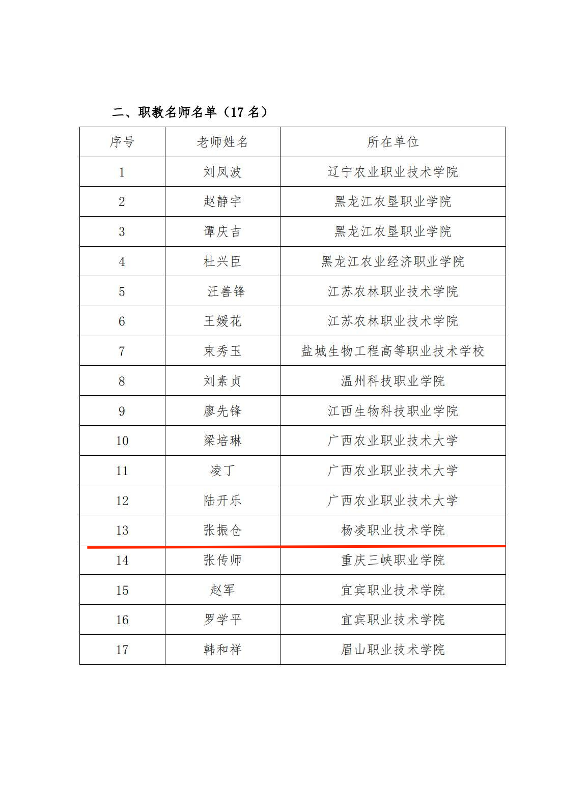 12月8日中国现代农业职业教育集团公布了集团2022年职教名师评选结果,动物工程学院张振仓副教授获此殊荣。
