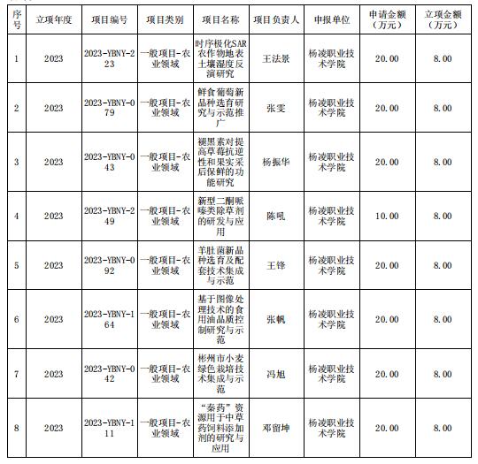 项目申报过程中game365游戏中心官网科教处积极动员、广泛宣传,经过项目负责人申报、科教处审核、杨凌示范区科技局推荐,共申报项目35,最终获批12项。其中,陕西省自然科学基础研究计划面上项目青年项目2项,陕西省重点研发计划一般项目8,共获批经费84万元,项目立项数与经费数均创历史新高。
