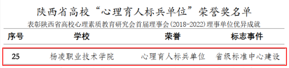 近日,由陕西省高校心理素质教育研究会举办的首届理事会(2018-2022)陕西省高校心理育人先进表彰推荐评选2022年度先进成就表彰与第七届校心理慕课作品评选活动落下帷幕,学校获陕西省高校“心理育人标兵单位”,5名学生、3个学生作品获奖