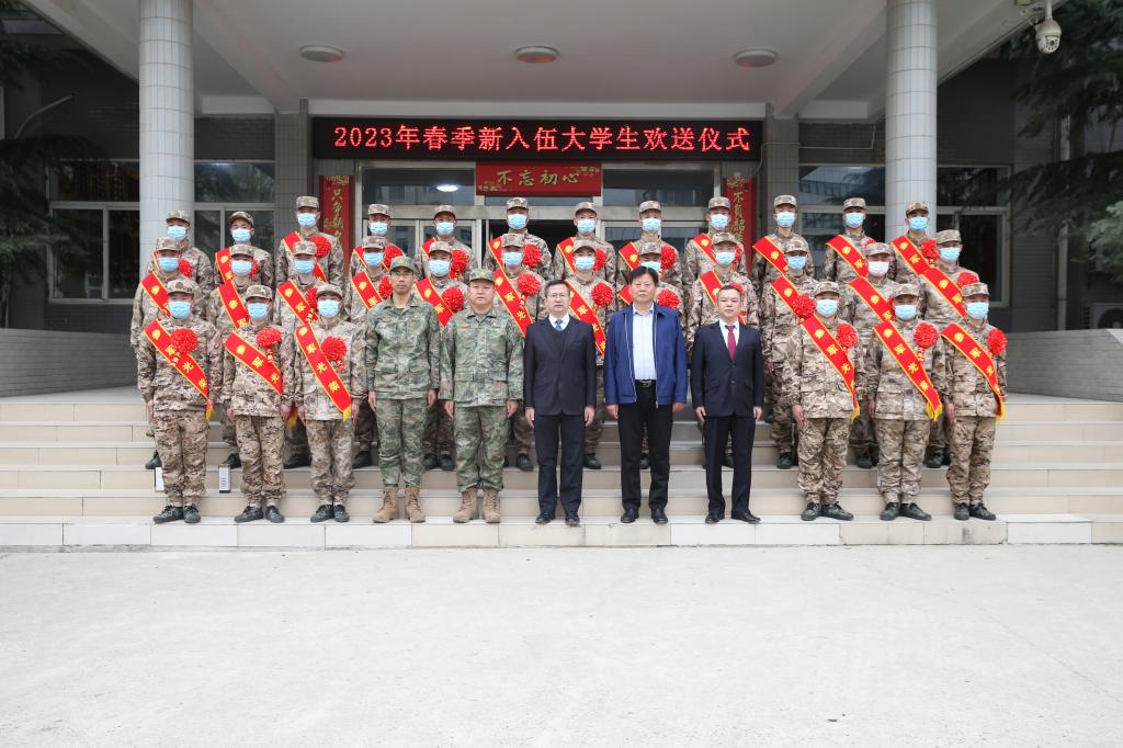 315日午,2023季game365游戏中心官网入伍大学生欢送仪式在陕西征程国防教育基地举行。副校长张朝晖、学工部部长陈军峰,杨陵区人武部部长李正文、政委任建卫及部分入伍学生家长等,共同欢送game365游戏中心官网从杨凌入伍的30名新兵。