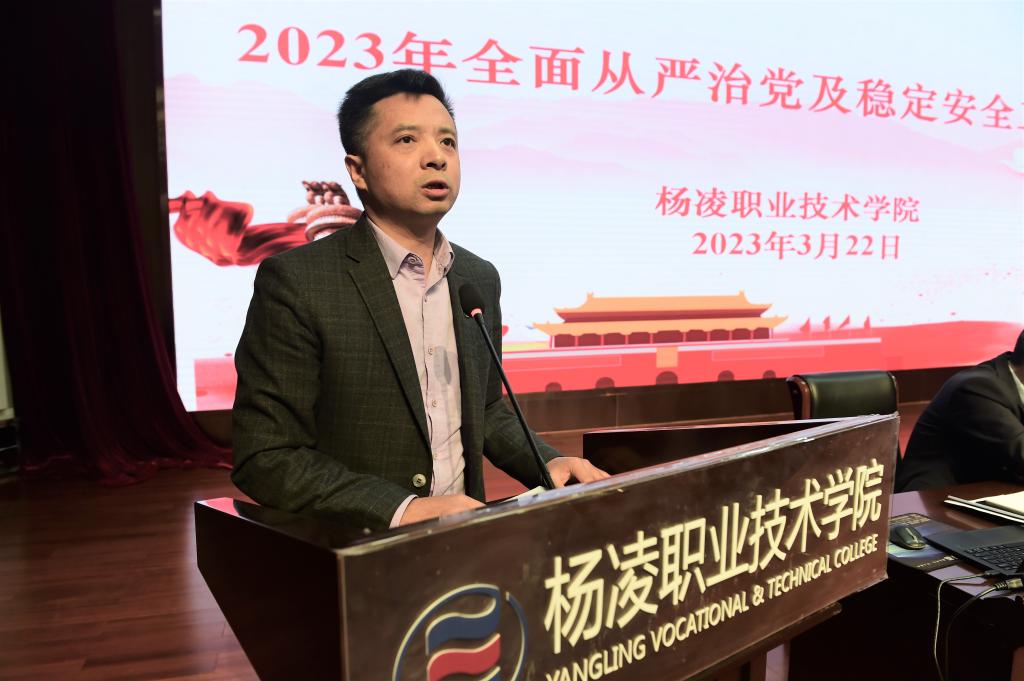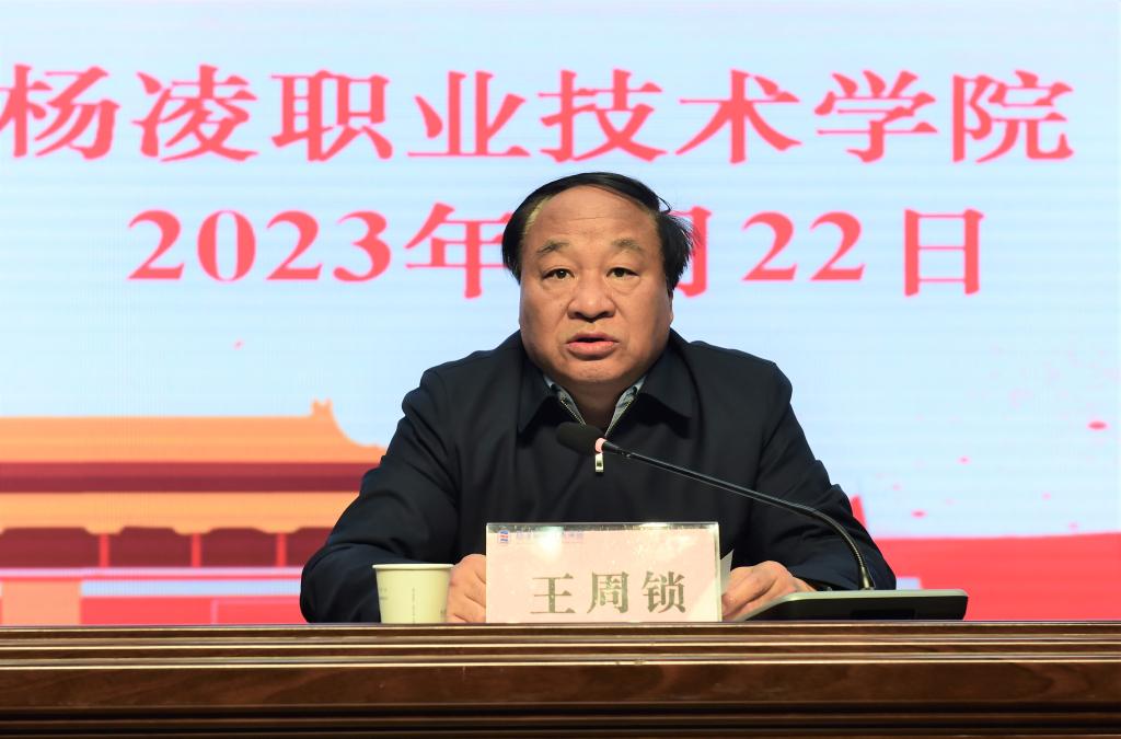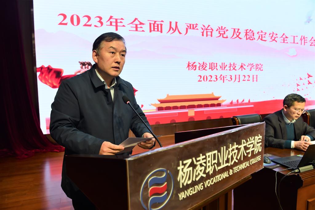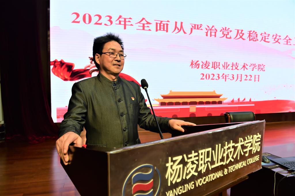 就抓好2023年全面从严治党及稳定安全工作,王周锁从政治建设铸魂育人、组织建设全面提升、守正创新呈现特色、三大重点跨越发展、作风能力激发动力、正风肃纪风清气正、稳定安全和谐有序等方面进行了安排部署。他强调,大家要按照党委的统一部署,强化政治意识、提高大局意识,强责任、转作风、勇担当,以只争朝夕的拼搏劲头,以苦干实干的奋进精神,以舍我其谁的奉献意志,迎难而上、奋勇争先,担当作为,持续推进全面从严治党向纵深发展,全面开创一流职业大学建设新局面。