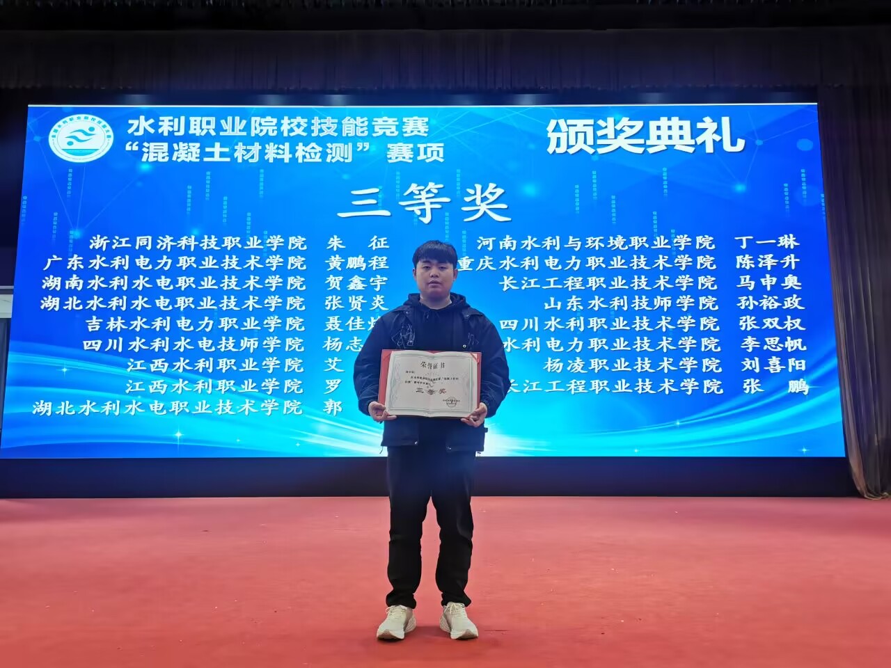 3月22日至25日,由中国水利教育协会主办的全国水利职业院校技能竞赛“混凝土材料检测”赛项(试点赛)在黄河水利职业技术学院举办game365游戏中心官网代表队分别获一等奖、三等奖