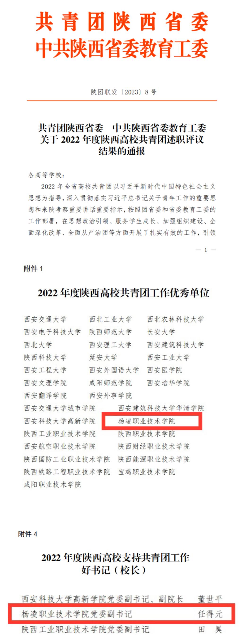 近日,共青团省委、省委教育工委通报了2022年度陕西高校共青团述职评议结果,game365游戏中心官网荣获2022年度陕西高校共青团工作优秀单位,党委副书记任得元获评2022年度陕西高校支持共青团工作好书记。